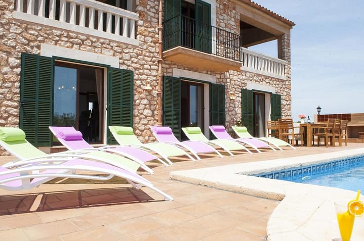 Villa Torrent des Vica is een mooie nieuwe woning in een rustieke stijl. Dit twee verdiepingen tellende landhuis biedt ruime slaapkamers vol van natuurlijk licht en buitenmuren bekleed met landelijke steen.Vanuit de lichte hal is er toegang tot de open woon / eetkamer met schuifdeuren die aansluiten op het terras en het zwembad. De keuken is ruim, goed uitgerust, met een ontbijt tafel en een bijkeuken, waar de wasmachine staat. Op deze verdieping is er ook een slaapkamer met een prachtige houten bed, en-suite douche en openslaande deuren met toegang tot het terras en het zwembad.De bovenste verdieping biedt drie slaapkamers, allen met toegang tot een eigen balkon / terras met een fantastisch uitzicht open landschap met de kust in de verte. Men heeft twee eenpersoonsbedden met en-suite badkamer met een groot hoekbad. De andere twee, een slaapkamer met tweepersoonsbed en een met twee éénpersoons bedden, delen een derde badkamer.