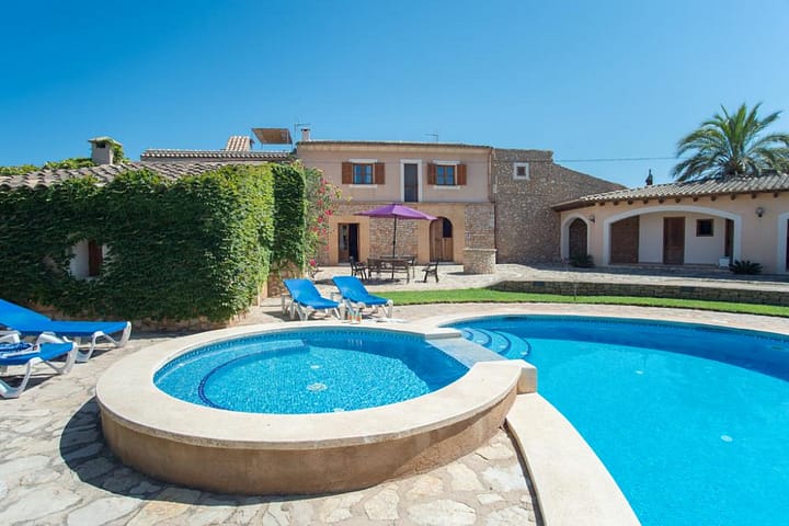 Villa Felanitx is een prachtig comfortabel landhuis vol met natuurlijk licht dat volledig is gerestaureerd met een prachtige traditionele rustieke uitstraling. Buiten is een originele gevel gedeeltelijk bekleed met landelijke stenen en de binnenkant heeft een plafonds met traditionele balken. Vanaf de lichte dubbelhoge entreehal bereiken we de open woonkamer/keuken. De keuken is goed uitgerust en beschikt over een eettafel. De comfortabele woonkamer heeft toegang tot de patio en het zwembad. De begane grond biedt ook een aparte slaapkamer en een aparte douche. Vanuit de hal leidt een trap met een mooi vormgegeven ijzeren leuningen naar de bovenste verdieping waar zich twee slaapkamers bevinden. Een ruime slaapkamer met een tweepersoonsbed en een slaapkamer met twee 1-persoons bedden, delen een aparte badkamer met een bad.