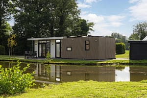 Luxe 4-persoons lodge Indeling De Waterlelie beschikt over een ruime, lichte woonkamer met comfortabele zithoek, televisie en eettafel. De moderne, open keuken is onder andere...