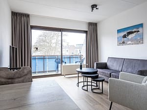 Royaal en comfortabel appartement met zonnig terras De woonkamer van het royale en sfeervol ingerichte appartement Roos heeft een eethoek en zithoek met een smart-tv. De open...