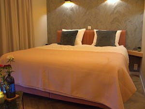 Ruime gastenkamer met eigen sanitair op de begane grond Ruime kamer op de begane grond met zithoek en eettafel en SmartTV. Er is een tweepersoons boxspringbed (180x200) met...