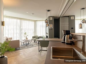 Luxe familievilla voor 8 personen op villapark in De Koog Deze 8-persoons villa bestaat uit twee geschakelde 4-persoons villa's. Via de hal kom je in de enorme woonkamer met...