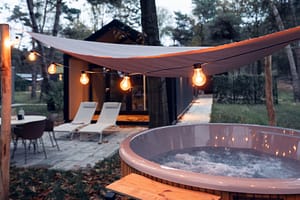 Modern ingerichte 4 persoons lodge met hottub in Haarle Deze lodge met eigen hottub is geschikt voor vier personen en ligt op een rustig bospark in Haarle. Het is gelegen...