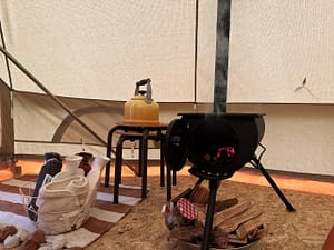 De sfeer van mijn yurt is geweldig. Mooi ingericht, ruim, gezellig, houtkachel waar je ook op kunt koken, fijn bed, warm water, geweldige douche, mooi terras, fantastisch uitzicht...