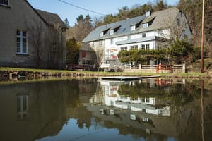 Een driezijdige binnenplaats, een hectare natuurtuin, een meertje, zwermen zwaluwen en kikkers, een bloemenzee en een wilde bloemenweide, uitzicht op het heuvellandschap en een...