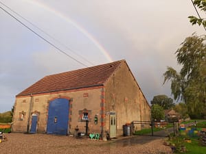 Een driehoekige boerderij, een hectare natuurtuin, een meertje, zwermen zwaluwen en kikkers, een zee van bloemen en wilde bloemenweiden, uitzicht op het heuvellandschap en een...