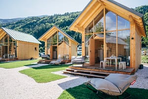 SALVIA GREEN (tuinzicht) Uitzicht Op een bevoorrechte locatie, direct aan de oever van het meer van Millstatt, liggen 25 unieke lodges voor een vakantie dicht bij de natuur. Laat...