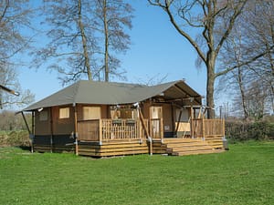 Stijlvol kamperen: comfort van thuis, midden in de natuur! Ervaar het ultieme glamping-gevoel in onze ruime safaritent op Recreatiepark Den Blanken!Met 45m² aan ruimte heb je...