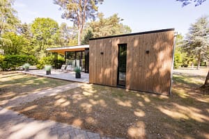 Bos Lodge BL6 Deze prachtige Bos Lodge straalt warmte en comfort uit. Deze eigentijdse uitstraling wordt benadrukt door de grote ramen die van de vloer tot het plafond reiken...