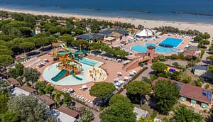 Camping Sant'Angelo Village in Cavallino Treporti biedt een prachtig waterpark met glijbanen, jacuzzi's en fonteinen. Ontspan met een boek aan het zwembad of zoek de spanning op...