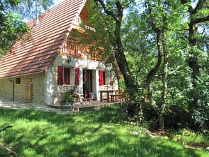 Midden in de bosrijke omgeving van Frankrijk, staat dit charmante natuurhuisje. Het huisje heeft een betoverend uitzicht over een ravijn. Op de overdekte veranda is het zowel in...