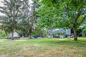 Een roulotte (pipowagen) in de Dordogne vlak naast Sarlat la Canada. Heerlijk 2 persoonsbed en 2 bedbanken, een tafel, opruimkasten, een magnetron, binnen en voor deze roulette...
