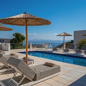 Wat een heerlijk sfeertje hangt er bij Orelia Luxury Villas op Karpathos! Het landschap met olijfbomen, het uitzicht over de azuurblauwe zee en het gebruik van de vele...