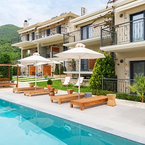 Na een warm welkom van gastheer Ahileas, ga ik eerst een kijkje nemen bij het zwembad van de Gallery Suites. Vanwege de bijzondere ligging tegen de groene heuvels van...