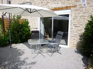 Aan de bosrand gelegen sfeervol, authentiek franse platelandswoning met afgesloten privé tuin. Kleine keuken met koelkast, vaatwasser, en magnetron. Woonkamer met tuingerichte...