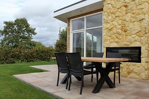Sfeervolle buitenruimte met pergola | Zitlounge met buitenhaard |