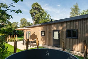 De Doornenburg Lodge biedt een comfortabele vakantiewoning voor 4 personen met moderne voorzieningen en een eigen terras in de Veluwe. Doornenburg Lodge Comfort | 4...