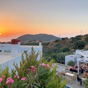 Vanaf mijn terras bij Panorama Villas kijk ik uit over de eindeloze blauwe zee. Wat een fijne plek! Manolis en Sonia, een gastvrij Grieks-Oostenrijks echtpaar, begonnen hier...