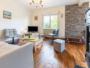 "Le Presbytère", huis in een rij 3-kamers 98 m2 op 2 verdiepingen. Mooi ingericht: woon-/eetkamer met open haard (alleen decoratie), eettafel, TV, Flatscreen TV en DVD. Uitgang...