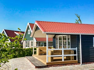 "Lodge", 3-kamers cottage. Comfortabel ingericht: open woon-/eetkamer met eettafel en TV (Flatscreen TV). Uitgang naar de veranda. 2 2-pers. kamers, elke kamer heeft 2 bedden....