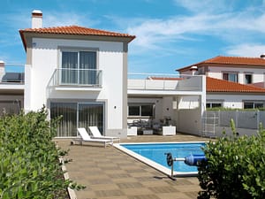 "Praia d'el Rey (OBI132)", huis 6-kamers 225 m2 op 2 verdiepingen. Modern en smaakvol ingericht: woon-/eetkamer met open haard (alleen decoratie), eettafel en Kabel-TV. Uitgang...