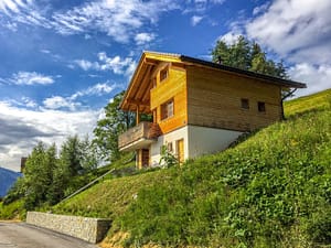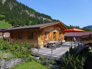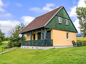 Chalet 5-kamers 73 m2 op 2 verdiepingen. Het objekt is geschikt voor 6 volwassenen. Ruim en licht, smaakvol en met veel hout ingericht: hal met aparte WC. Woon-/eetkamer met 2...