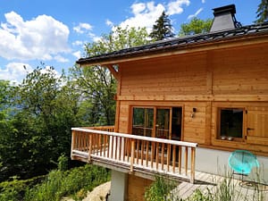 Chalet 3-kamers 110 m2 op 2 verdiepingen. Ruim, zeer comfortabel en modern ingericht: groot woon-/eetkamer met open haard. Uitgang naar de tuin, naar het balkon. Hal met aparte...