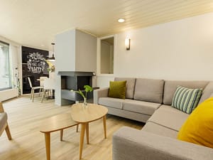 "Comfort Cottage", huis 4-kamers 70 m2. Comfortabel ingericht: hal met aparte WC. Woon-/eetkamer met open haard, eettafel en Flatscreen TV. Uitgang naar het terras. 2 2-pers....