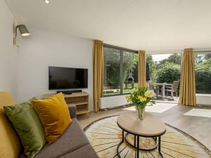 "Premium Cottage", huis in een rij 3-kamers 62 m2 op 2 verdiepingen. Comfortabel ingericht: hal met aparte WC. Woon-/eetkamer met open haard en Flatscreen TV. Uitgang naar het...