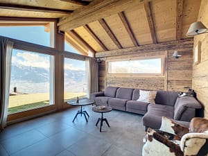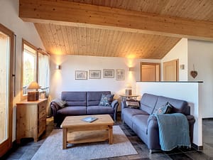 "Jodeli", chalet 5-kamers op 3 verdiepingen, op het zuiden gelegen. Comfortabel en mooi ingericht: woon-/eetkamer met open haard, zwedenkachel, eettafel en DVD. Uitgang naar het...