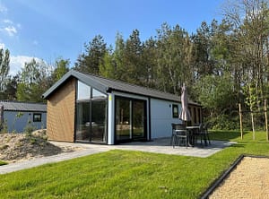 Hackfort 4 heeft dankzij zijn grote raampartijen veel natuurlijk lichtinval. Het vrijstaande chalet is gelijkvloers en geschikt voor maximaal 4 personen. In de woonkamer tref je...