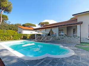 "Il Parco", villa 8-kamers 180 m2. Comfortabel en smaakvol ingericht: woonkamer met Sat-TV en DVD. Eetkamer. 1 2-pers. kamer met douche/bidet/WC. 1 kamer met 1 bed en...