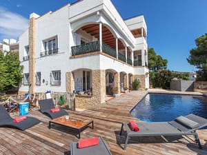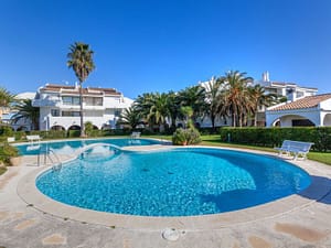 "MADRESELVA", huis in een rij 4-kamers 75 m2 op 2 verdiepingen, op het zuidwesten gelegen. Licht, mooi en stijlvol ingericht: woon-/eetkamer met eettafel en Sat-TV. Uitgang naar...