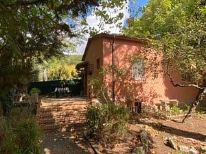 "Il Leccio", huis 2-kamers 32 m2, op de begane grond. Zeer eenvoudig en rustiek ingericht: 1 kamer met 1 bed en 1 2-pers bed (160 cm, lengte 190 cm). Keuken (3 kookpitten...