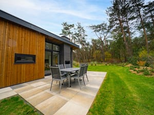 "Pavilion 4", chalet 3-kamers. Comfortabel ingericht: woon-/eetkamer met eettafel en Flatscreen TV. Uitgang naar het terras. 1 2-pers. kamer met 1 2-pers bed. 1 2-pers. kamer met...