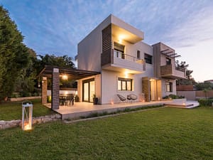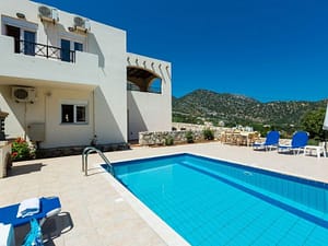 "Villa Afandou I", villa 5-kamers 250 m2 op 2 verdiepingen. Ruim en licht, comfortabel en modern ingericht: open woonkamer met open haard en Sat-TV (Flatscreen TV), DVD. Uitgang...