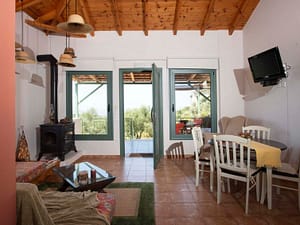"Villa Charakas", villa 4-kamers 100 m2 op 2 verdiepingen. Ruim en licht, comfortabel en mooi ingericht: open woon-/eetkamer met eettafel en Sat-TV (Flatscreen TV), DVD. Uitgang...