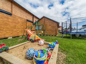"Mielno - domek parterowy", bungalow 2-kamers 25 m2. Open woon-/slaapkamer met 1 2-pers divanbed (140 cm, lengte 190 cm), TV. Uitgang naar het terras. 1 kamer met 2 bedden (90...