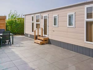 "Lodge", 3-kamers cottage. Comfortabel ingericht: open woon-/eetkamer met eettafel en TV (Flatscreen TV). Uitgang naar de veranda. 2 2-pers. kamers, elke kamer heeft 2 bedden....