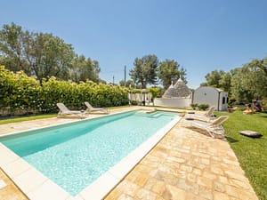 "Trullo California", huis 3-kamers 65 m2, op de begane grond. Rustiek ingericht: eetkamer met open haard (alleen decoratie), TV. Uitgang naar de tuin. 1 open 2-pers. kamer met...
