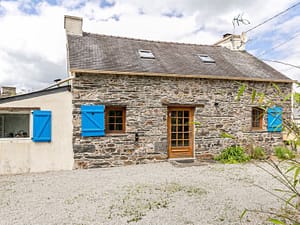 "Penty breton", huis 3-kamers 80 m2. Mooi en gezellig ingericht: woon-/eetkamer 50 m2 met zwedenkachel en TV. Uitgang naar de tuin. Open keuken (1 kookplaat, oven, afwasmachine,...