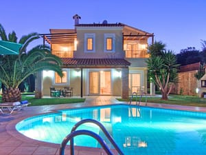 "Erofili", villa 5-kamers 190 m2 op 2 verdiepingen. Ruim en licht, comfortabel en mooi ingericht: open woon-/eetkamer met open haard, eettafel en TV. 1 2-pers. kamer met 2...