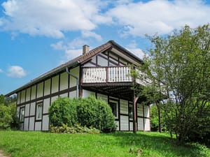 "Am Sternberg 7", huis 4-kamers op 3 verdiepingen. Rustiek en met veel hout ingericht: open woon-/eetkamer met eethoek, Digitale TV, radio en houtkachel. Uitgang naar het terras....