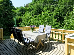 "Boråskilen (SOO687)", appartement 5-kamers 76 m2 op de 1e verdieping. Smaakvol ingericht: woon-/eetkamer met zwedenkachel, eettafel en DVD. Uitgang naar het balkon. 1 kamer met...