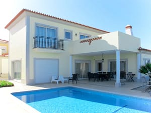 "Praia d'el Rey (OBI133)", huis 6-kamers 225 m2 op 2 verdiepingen. Modern en smaakvol ingericht: woon-/eetkamer met open haard (alleen decoratie), eettafel en Kabel-TV. Uitgang...