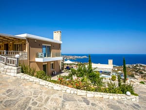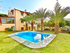 "Potamitis", villa 5-kamers 170 m2. Ruim en licht, zeer mooi en luxueus ingericht: groot woon-/slaapkamer met schuifdeur gordijn panoramavenster met 2 divanbedden, open haard,...