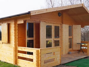 "Fir Cottage", bungalow 4-kamers. Comfortabel en gezellig ingericht: woon-/eetkamer met eettafel en TV (Flatscreen TV). Uitgang naar de tuin. 1 kamer met 1 2-pers bed. 2 kamers,...