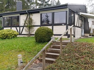 "Haus 46", bungalow 3-kamers 60 m2. Gedeeltelijk afgeschuinde daken, gezellig ingericht: woon-/eetkamer 30 m2 met Sat-TV (Flatscreen TV), CD-speler en DVD. Uitgang naar het...