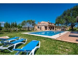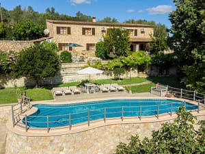 "Son Femenia (PIC320)", 5-kamers cottage 150 m2 op 2 verdiepingen. Mooi en rustiek ingericht: groot woon-/eetkamer met open haard (alleen decoratie), eettafel en Sat-TV. Keuken...
