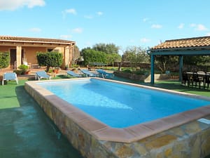 "Ca Na Mari (MLR220)", huis 4-kamers 110 m2. Rustiek ingericht: woon-/eetkamer met open haard (alleen decoratie), eettafel en Sat-TV. Uitgang naar het terras. 1 kamer met 1...